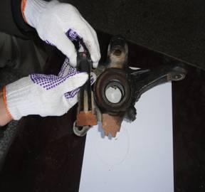 3.4.为进一步确定事故的成因,对断裂的左前轮转向节臂从车体上及车轮上拆卸取样后做进一步检验。